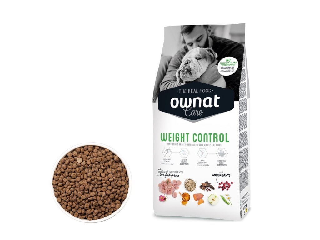 Krmivo pro psy s nadváhou – podpora ideální hmotnosti, trávení a kloubůOwnat Care Weight Control je speciálně navrženo pro dospělé psy všech plemen, kteří mají sklony k nadváze nebo potřebují redukovat tělesnou hmotnost. Obsahuje snížený obsah tuku (9 %), vysoký podíl vlákniny (8,5 %) pro pocit sytosti a funkční složky (glukosamin, chondroitin, kurkuma, ďáblův dráp) na podporu kloubů a pohyblivosti.