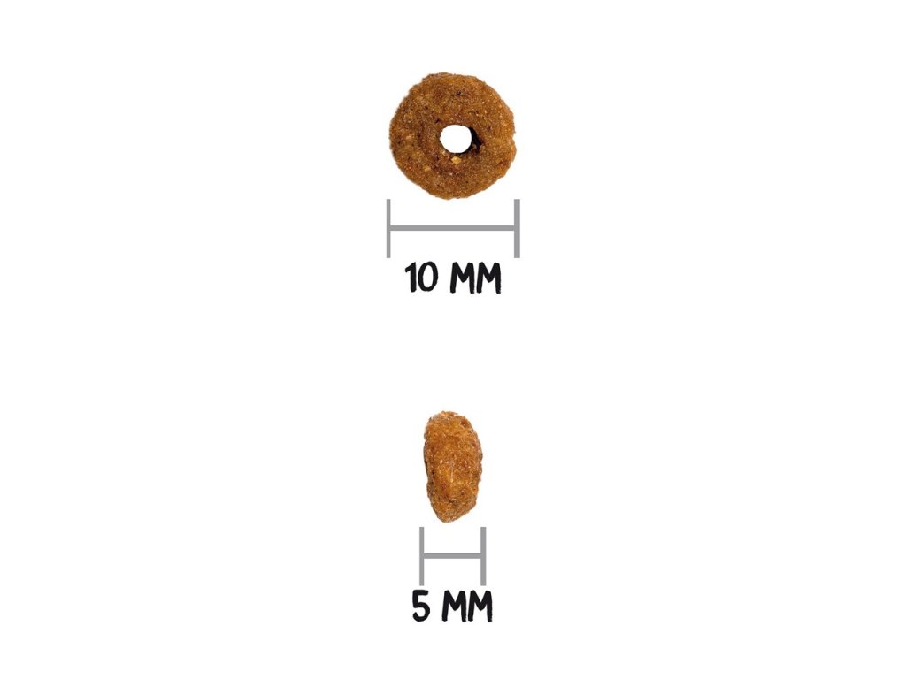 SLOŽENÍ: Maso 36% (dehydratované maso 26%, čerstvé kuřecí maso* 10% před vytlačováním), celozrnná kukuřice* (20%), kuřecí tuk, celozrnná pšenice* (9%), celozrnný ječmen* (7%), celý hrách* (5%), hnědá rýže* (5%), kukuřičné proteiny, pivovarské kvasnice* (1,5%), hydrolyzovaný kuřecí protein, sušené ryby, jablko* (1%), lososový olej, řepné řízky, fruktos- a mannan-oligosacharidy, aromatické byliny 0,02% (fenykl*, heřmánkový květ*, anýz zelený*), juka schidigera.*Přírodní ingredience.