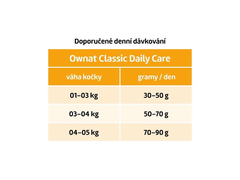 Krmivo OWNAT CLASSIC CAT Daily Care je skvělou volbou pro každodenní výživu koček všech plemen, zajišťuje jim zdraví a vitalitu po celý den.