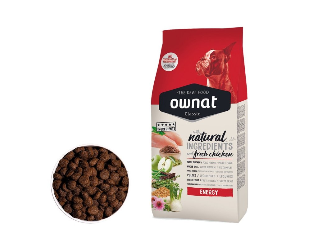 Kvalitní složení: OWNAT CLASSIC DOG Energy je vyrobeno z pečlivě vybraných surovin, které zajišťují všechny potřebné živiny pro dlouhodobé zdraví a vitalitu vašeho psa.