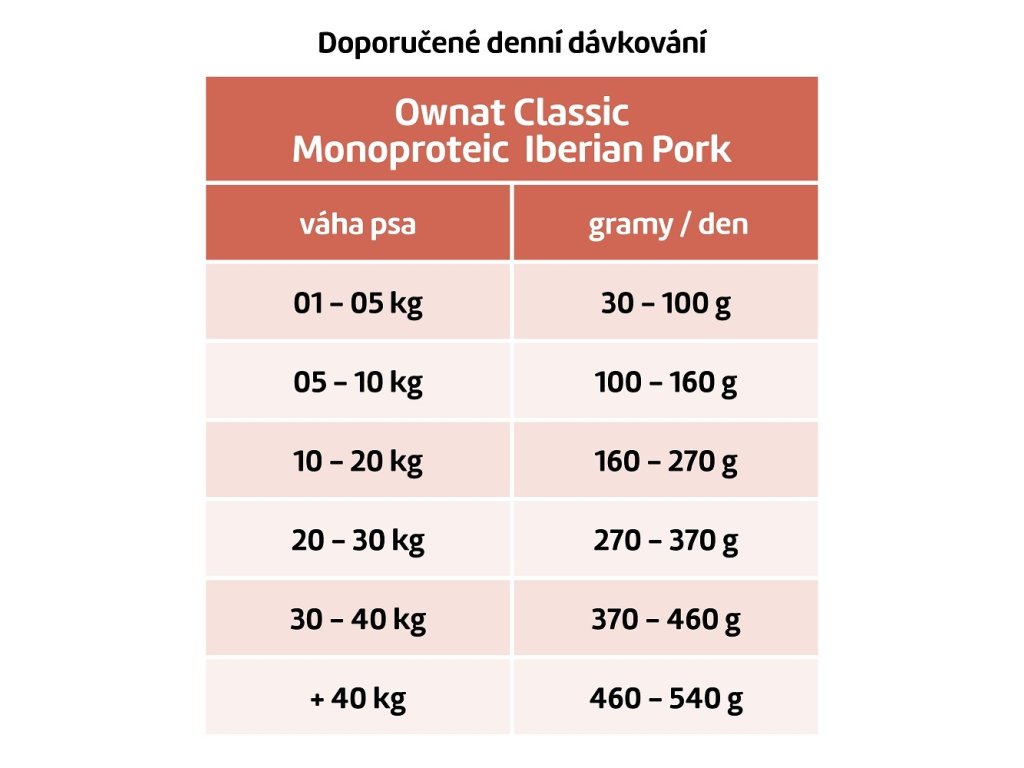 Hlavní výhody OWNAT CLASSIC MONOPROTEIC DOG Iberian Pork: