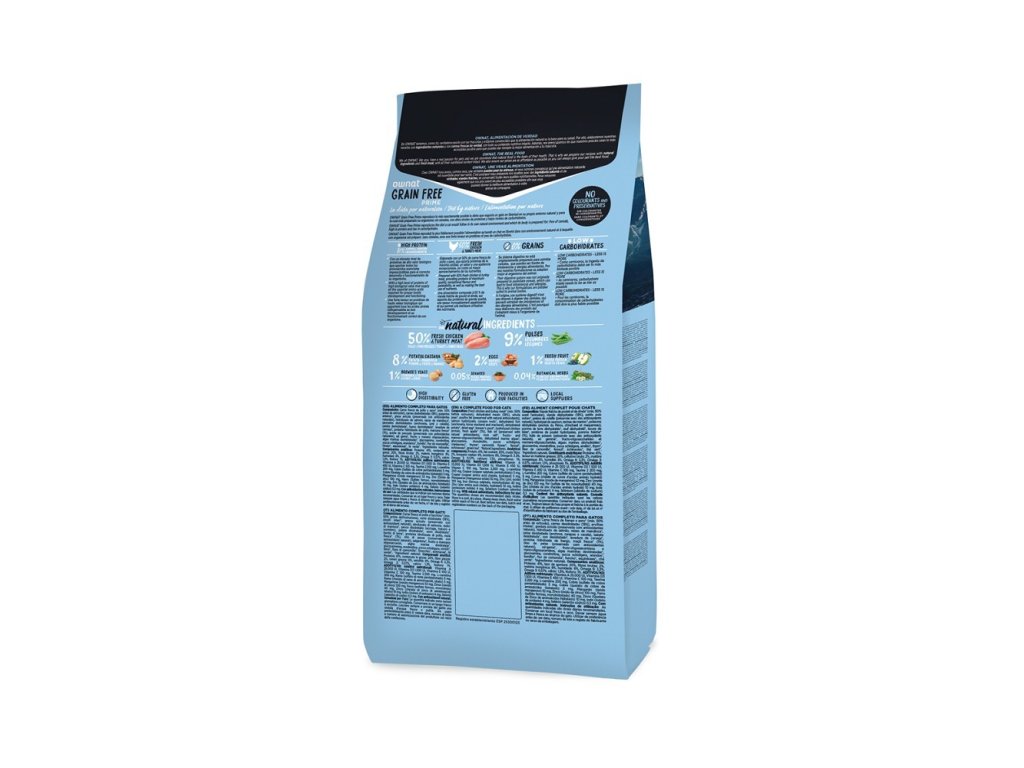 SLOŽENÍ: Čerstvé kuře* (min. 25% před vytlačováním), čerstvé krůtí* (min. 25% před vytlačováním), dehydrované vepřové maso (13%), celý hrách* (9%), drůbeží tuk (konzervovaný přírodními antioxidanty), lososový hydrolyzát, dehydrované kuře (5%), kořeny manioku* (5%), dehydrované ryby (sardele, kranase a makrely), dehydratované brambory* (3%), sušené vejce* (2%), pivovarské kvasnice* (1%), hydrolyzovaný kuřecí protein, jablko* (1%), rybí tuk (konzervovaný přírodními antioxidanty), kamenná sůl*, fruktos- a mannan-oligosacharidy, sušené mořské řasy* (500 mg/kg), glukosamin (500 mg/kg), juka schidigera, chondroitin sulfát (100 mg/kg), borůvky* (100 mg/kg), tymián* (80 mg/kg), heřmánkový květ* (80 mg/kg), fenykl* (80 mg/kg), echinacea* (80 mg/kg), zelený čaj* (80 mg/kg). *Přírodní ingredience
