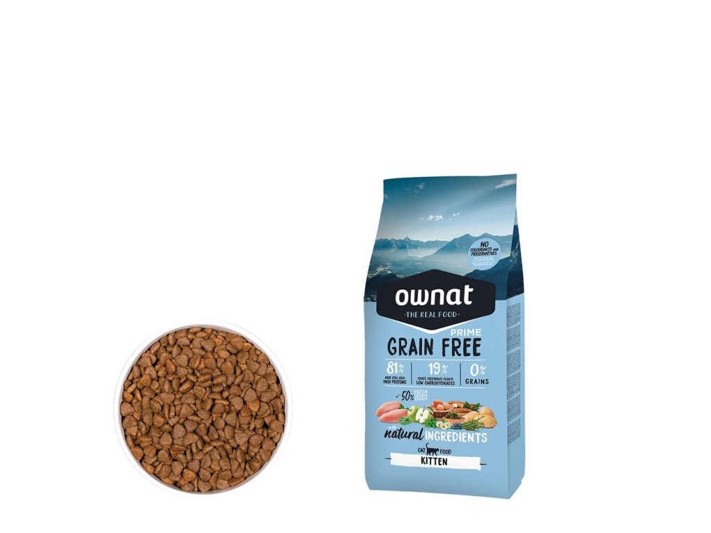 OWNAT GF PRIME CAT Kitten je ideální krmivo pro rostoucí koťata. Je navrženo tak, aby poskytovalo všechny klíčové živiny nezbytné pro správný růst a vývoj koťat. Čerstvé maso z kuřete a krůty zajišťuje dostatek kvalitních bílkovin pro růst svalů a rozvoj silné kostry. Tento bezobilný recept je snadno stravitelný a podporuje zdravé trávení a imunitní systém.