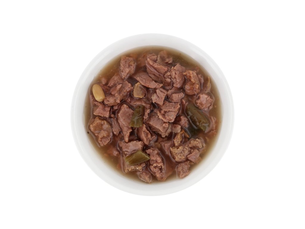 Šťavnaté kousky jehněčího masa s mrkví v lahodné omáčce tvoří kompletní krmivo s vyváženým složením, které přispívá ke spokojenému a aktivnímu životu dospělých koček všech...
