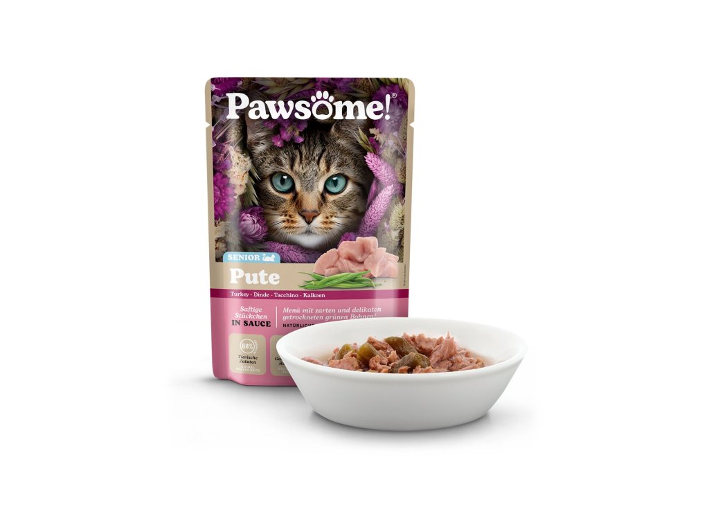 Šťavnaté kousky s krůtím masem a zelenými fazolkami v husté omáčce tvoří kompletní krmivo s vyváženým podílem bílkovin, tuků, vitamínů a minerálů, které přispívá k udržení kondice a spokojenému životu starších koček.