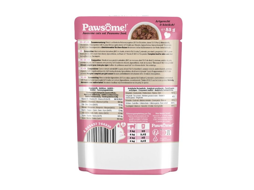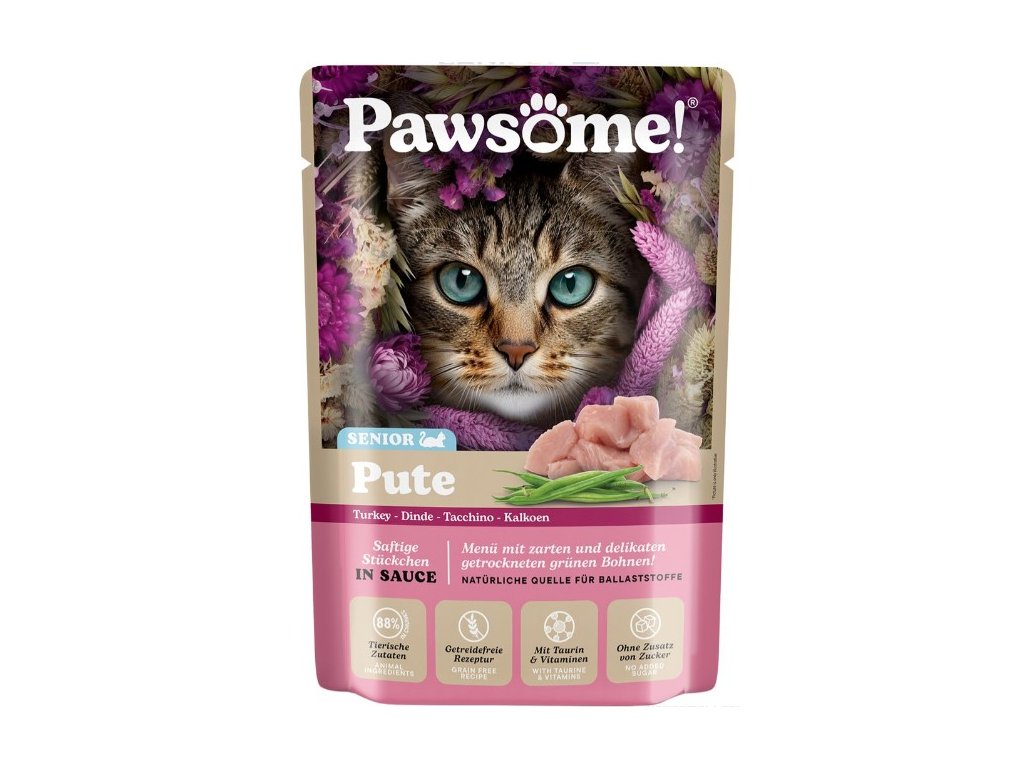 Krmivo Pawsome! obsahuje velké množství živočišných bílkovin a nenajdete v něm obiloviny ani přidaný cukr – protože ani jedno do kočičí misky nepatří. Je vytvořeno tak, aby splňovalo očekávání i těch nejmlsnějších mazlíčků a zároveň jim dodalo živiny, nezbytné pro jejich každodenní dobrodružství.