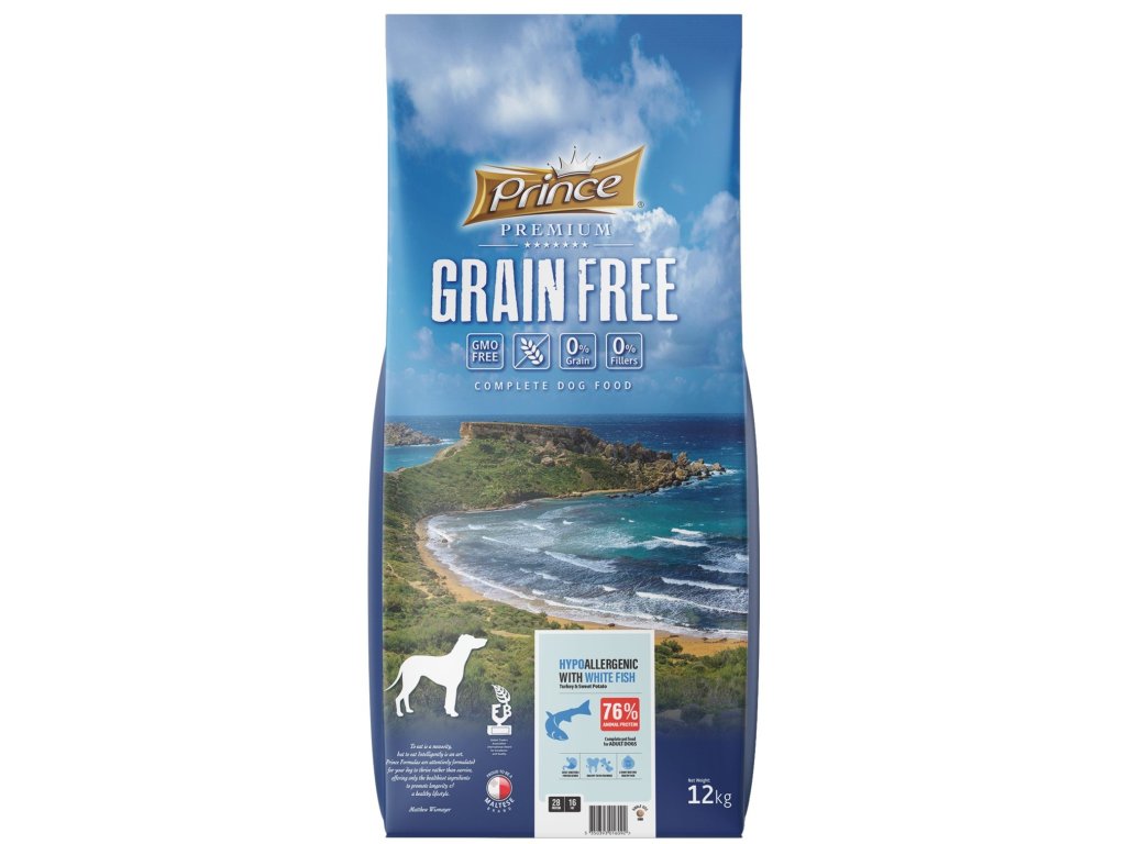 PRINCE HYPOALLERGENIC WITH WHITE FISH 12KG - s bílou rybou, krůtím masem a sladkými bramboramikompletní krmivo pro dospělé psy věch věkových kategoriíPokud hledáte HYPOALERGENNÍ krmivo bez obilovin, bez lepku, bez GMO a bez plnidel, je řada PRINCE PREMIUM GRAIN FREE ta správná volba!Dopřejte svému pejskovi bezobilnou řadu PRINCE. Prémiové suché krmivo pro psy bez obilovin, pečlivě vyvinuté pro psy všech věkových kategorií. Kvalitní krmivo plné esenciálních živin. Tato výjimečná receptura přináší mnoho výhod, díky nimž bude váš mazlíček prospívat.3 klíčové vlastnosti: