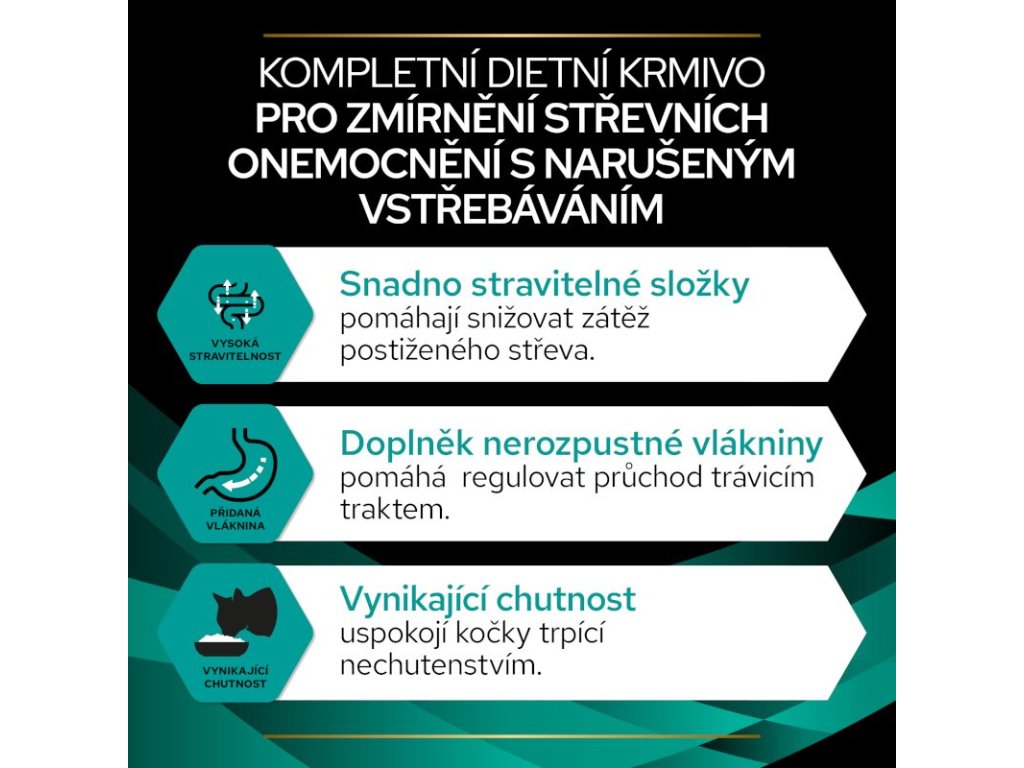 Kompletní dietní krmivo pro dospělé kočky a koťata určené k omezení střevních resorpčních onemocnění a pro nutriční obnovu a regeneraci. Vysoce stravitelné krmivo se zvýšeným obsahem sodíku a draslíku, vysokou koncentrací energie, vysokou koncentrací esenciálních živin a s vysoce stravitelnými komponenty.