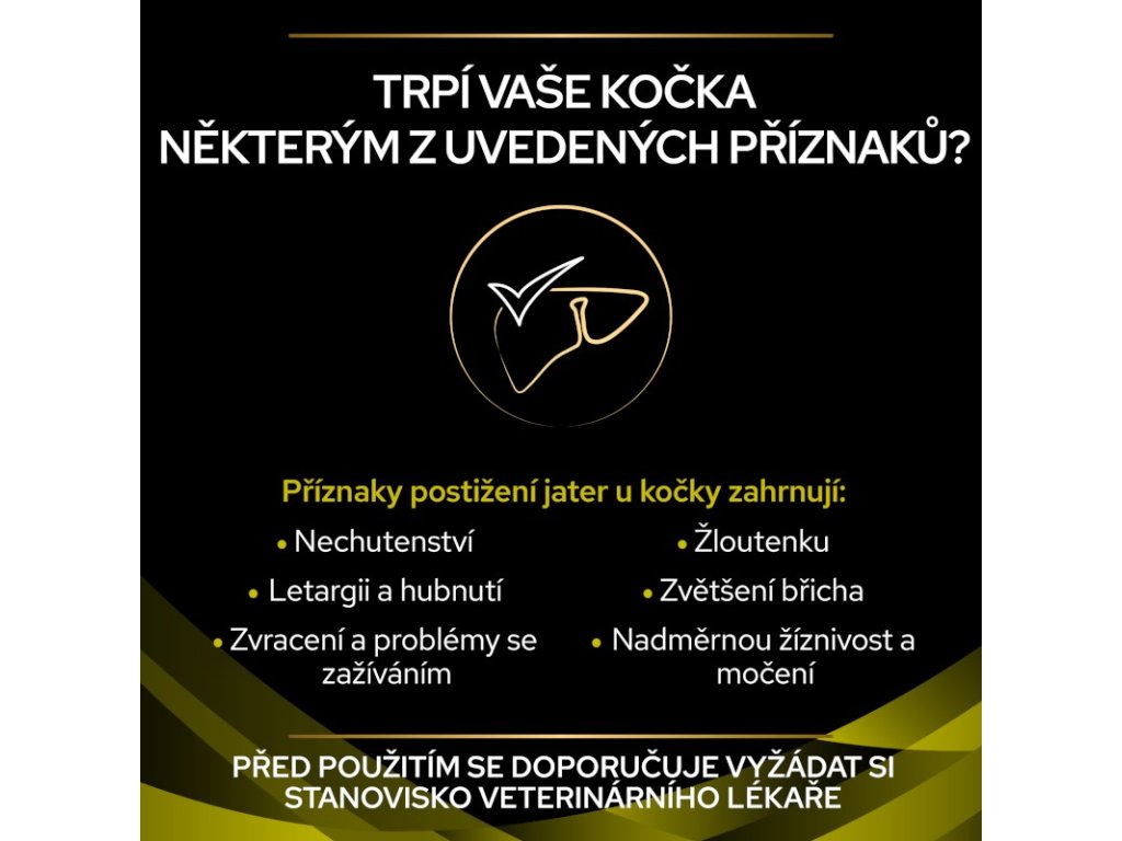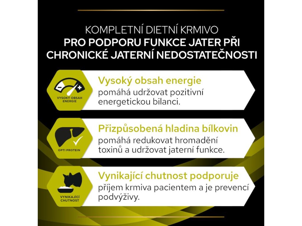 Kompletní dietní krmivo pro dospělé kočky určené k podpoře jaterní funkce v případě chronické jaterní nedostatečnosti. Krmivo s přiměřeným obsahem vybraných a vysoce stravitelných bílkovin.
