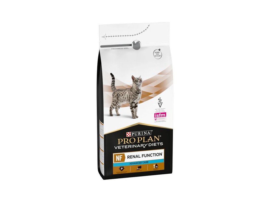 Granule Pro Plan VD Feline NF Advanced Care jsou kompletní dietní krmivo pro dospělé kočky, určené k podpoře ledvinové nedostatečnosti v případně pokročilého a chronického stádia. Krmivo pomáhá zpomalit postup onemocnění, prodlužuje dobu přežití a zkvalitňuje život nemocných koček. Vynikající chutnost a cílené složení splňuje nutriční požadavky koček s onemocněním ledvin. Dieta se vyznačuje sníženým obsahem vysoce kvalitních bílkovin a sníženým obsahem fosforu.