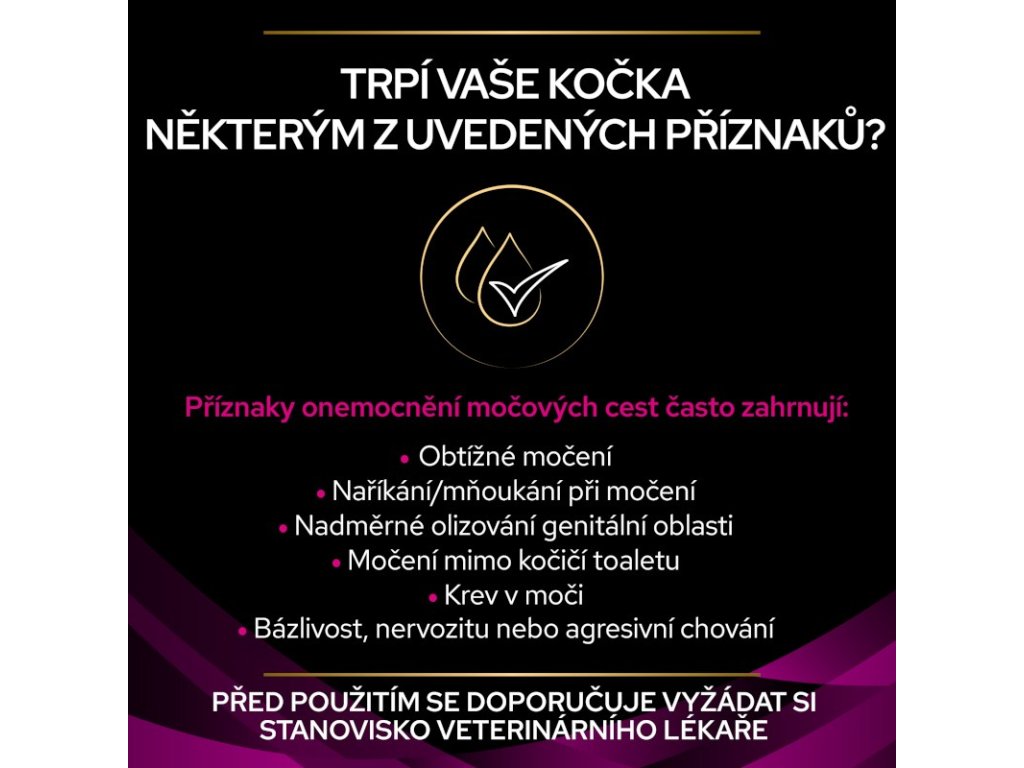 Kompletní dietní krmivo pro dospělé kočky určené k rozpouštění struvitových kamenů a k omezení jejich opakované tvorby. Krmivo s nízkým obsahem hořčíku, se schopností okyselovat moč a vytvářet nenasycenou moč omezující tvorbu struvitu. Krmivo je také určené pro nutriční management koček s onemocněním dolního močového ústrojí.