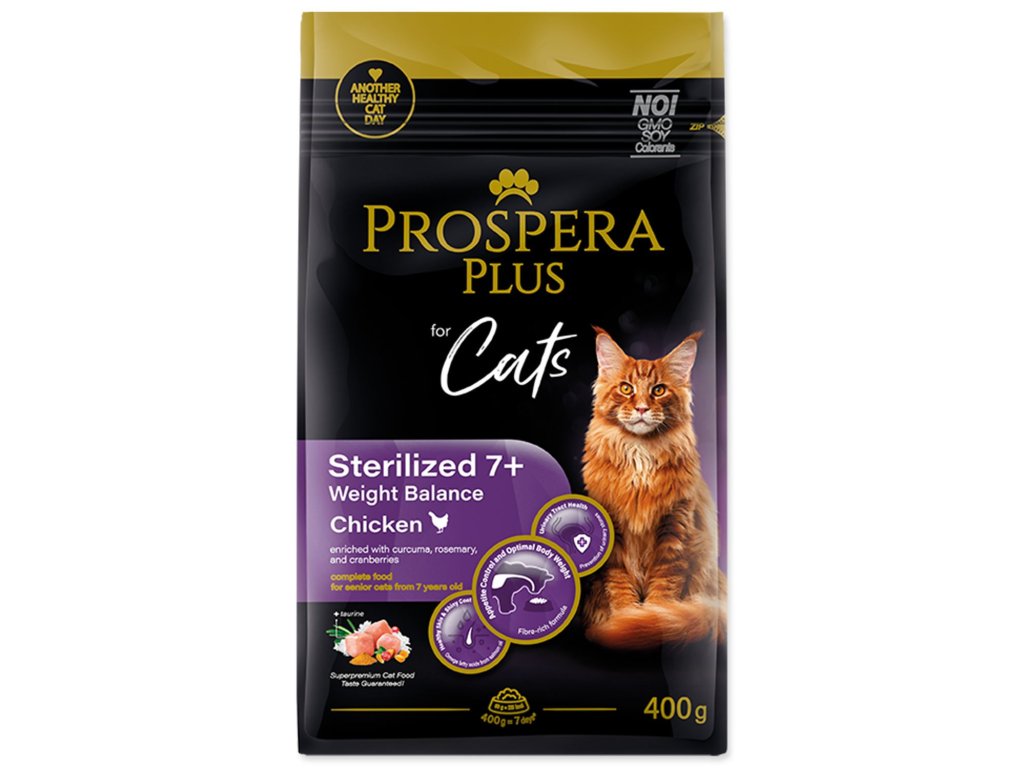 Kompletní suché krmivo pro kastrované kočky od 7 roku s kuřetem.