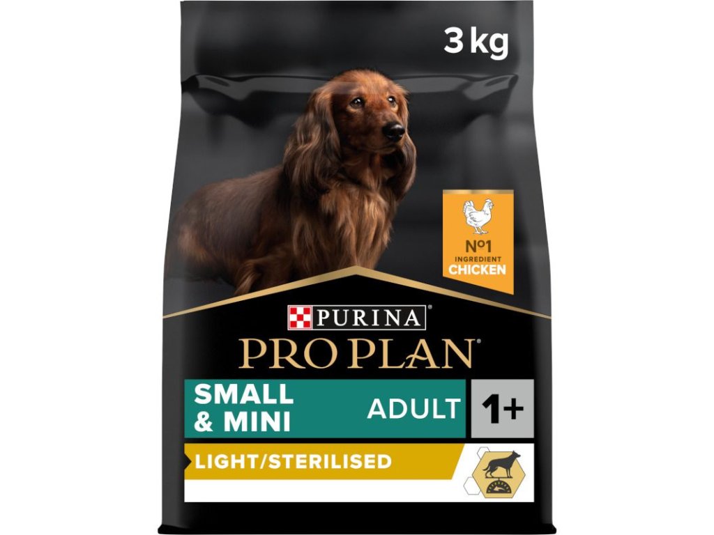 Krmivo Purina PRO PLAN® Light/Sterilised SMALL & MINI ADULT bylo vyvinuto pro dospělé psy malých a trpasličích plemen (do 10 kg hmotnosti). Granule obsahují vitamín D, minerální látky a specifické množství omega-3 mastných kyselin (0,3 %), které přispívají ke zdraví zubů a dásní. Krmivo má vysoký podíl kuřecího a splňuje nároky na optimální výživu psů od 12 měsíců věku.Objevte výhody, které má řada Light/Sterilised pro zdraví a pohodu vašeho psa.