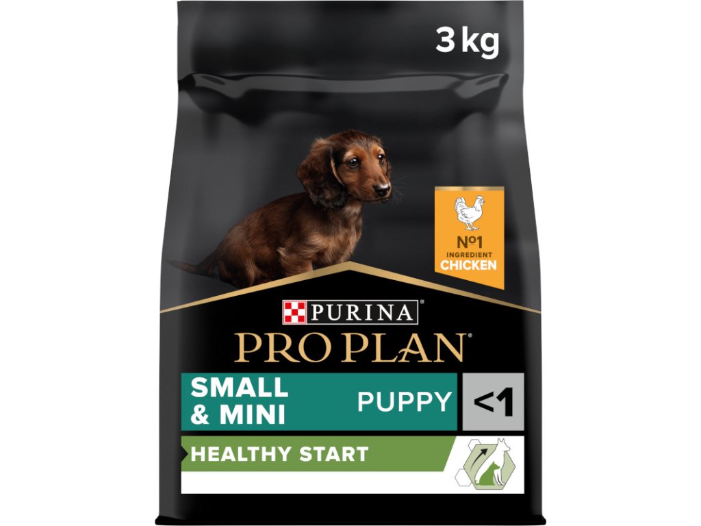 Krmivo Purina PRO PLAN® Healthy Start SMALL&MINI PUPPY je vhodné pro štěňata malých a trpasličích plemen (s hmotností do 10 kg v dospělosti). Tyto granule pro štěňata obsahují vitamín D, minerální látky a specifické množství omega-3 mastných kyselin (0,4 %), které přispívají ke zdraví zubů a dásní. Krmivo má vysoký podíl kvalitního kuřecího, a tak zajišťuje optimální výživu pro rostoucí štěňata malých a trpasličích plemen. To vše až do věku 12 měsíců, kdy přejdou na produkty řady ADULT.
