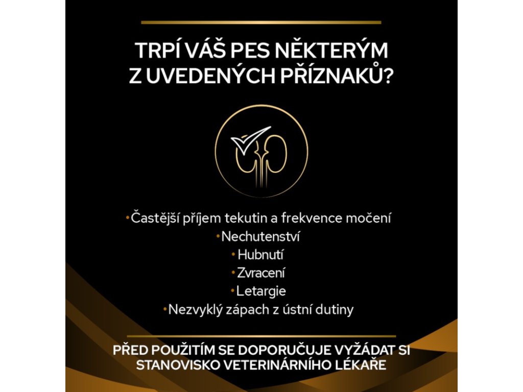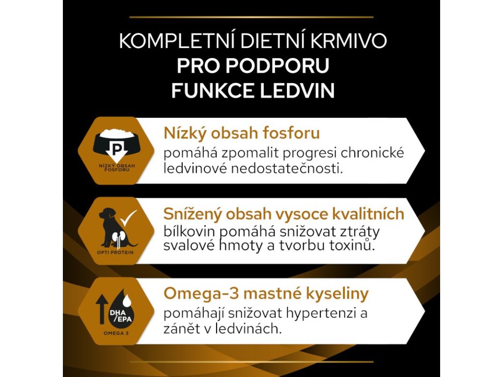 Kompletní dietní krmivo se sníženým obsahem bílkovin vysoké jakosti a fosforu pro dospělé psy určené k podpoře ledvinové funkce v případě chronické ledvinové nedostatečnosti. Dieta s nízkým obsahem bílkovin a schopností alkalizovat moč je také vhodná k omezení tvorby urátových a cystinových kamenů.