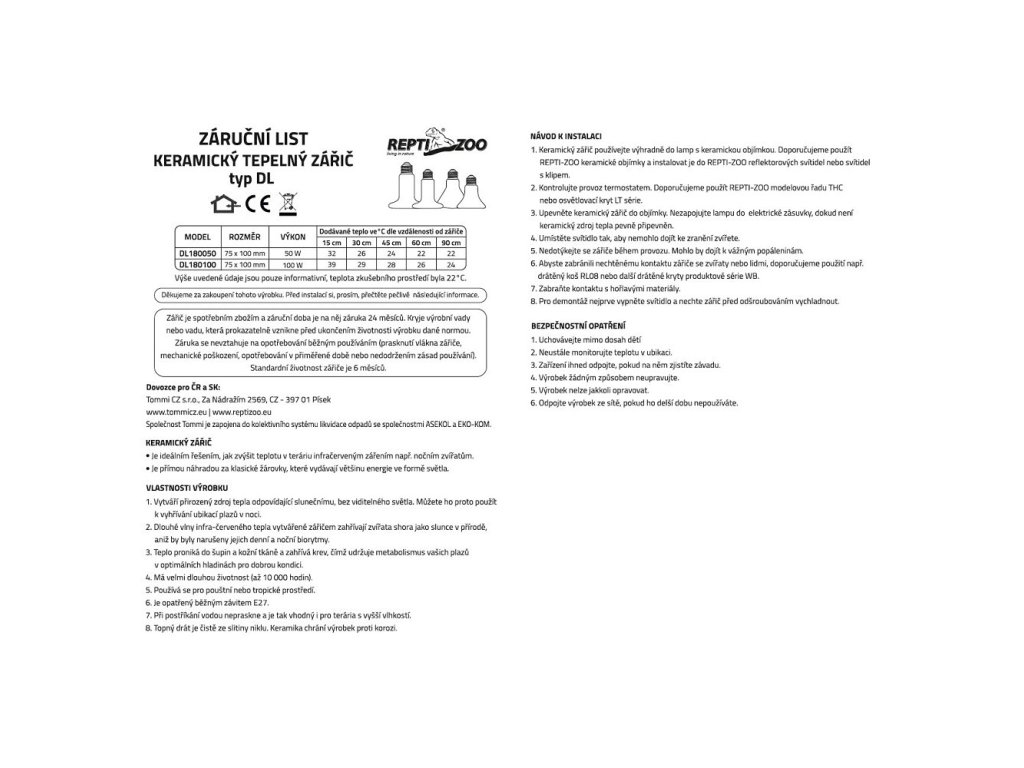 ReptiZoo Tepelný zářič keramický DL, 100W