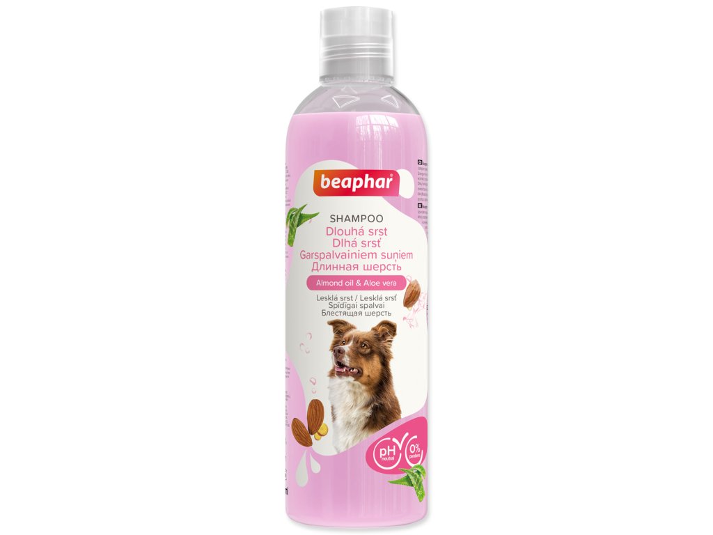Beaphar Shampoo Long Coat Dog je jemný šampon speciálně vyvinutý pro dlouhosrsté psy. Šampon důkladně čistí kůži a srst. Přidané ovocné aroma vyživuje vlasy od kořínků pro zdravý a lesklý efekt. Srst se po umytí snadno rozčesává, což zabraňuje poškození srsti. Šampon je pH neutrální k pokožce, a proto je vhodný pro psy s citlivou srstí.