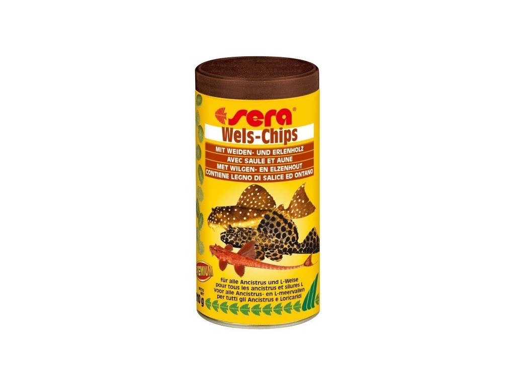 Sera Wels-Chips je základní krmivo bez barviv a konzervačních látek pro ryby, které svou potravu buď seškrábávají nebo odsávají ze dna, jako jsou ancistrusy, L-sumečci a další. Vyvážená receptura s vysokým podílem vláknin (mj. vláknina z vrbové kůry a olšových šišek) a rovněž přírodní spirulina podporují zdravé trávení a rozvoj. Rychle klesající, ve vodě měknoucí chipsy zůstávají nejméně 24 hodin tvarově stabilní a neznečišťují vodu. Tak umožňují převážně v noci aktivním sumečkům bezproblémové krmení, které odpovídá jejich přirozeným zvyklostem. Bez barviv a konzervačních látek Kompletní a vyvážené krmivo Krmivo obsahuje všechny základní složky pro podporu zdraví ancistrusů a L-sumečků Velikost balení: 250 ml Složení: Rybí moučka, kukuřičný škrob, pšeničná mouka, pšeničné klíčky, spirulina (4 %), pivní kvasnice, mléčný prášek, rybí tuk (z toho 49 % Omega-mastných kyselin), byliny, vaječný prášek, vrbová kůra, olšové šišky, kopřivy, vojtěška, Mannan-oligosacharid, petržel, mořské řasy, paprika, špenát, slávka zelenoústá, řasy Haematococcus, karoten, česnek. Analytické složky: Bílkoviny 31,2 %, tuky 7,2 %, vláknina 4,9 %, vlhkost 5,0 %, popel 6,5 %. Doplňkové látky: Nutriční doplňkové látky v 1 kg: Vitaminy a provitaminy: vit. A 30.000 m.j., vit. D3 1.500 m.j., vit. E (D, L-?-tocoferyl acetát) 60 mg, vit. B1 30 mg, vit. B2 90 mg, stab. vit. C (L-ascorbyl monofosfát) 550 mg. m.j.=mezinárodní jednotka Krmný návod: 1–2x denně tolik kolik ryby spotřebují v krátké době.