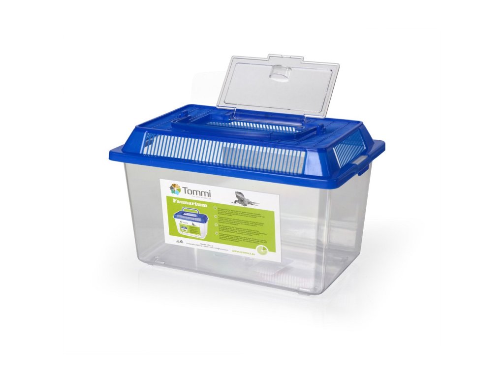 Fauna boxy jsou vhodné předevší pro terra živočichy. Sloužit mohou jako terárium, akvárium, vivárium či odchovna mláďat. Pro hlodavce jsou vhodné pouze pro transport, nikoli pro trvalé obývání. Snadná manipulace, jednoduchá údržba Dostatečné větrací otvory Otevírání velkého víka pro čištění, malé víčko pro krmení Bezpečné oblé rohy Vyrobeno z lehkého transparentního materiálu K dostání ve třech dalších velikostech (1,3 a 4). Barva víka: Modrá Rozměry: 21x13,5x13 cm