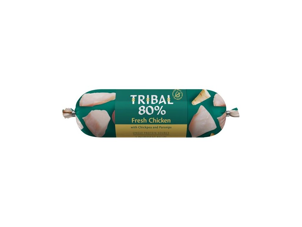 Toto kompletní mokré bezobilné monoproteinové krmivo pro psy obsahuje 80 % živočišných bílkovin. Receptura sestává z pouhých 3 ingrediencí: 80 % masa z jednoho zdroje + cizrna + pastinák. Díky jednoduchému složení jsou salámy Tribal 80 % vhodné i pro nejcitlivější a nejvybíravější psy a jsou ideálním doplňkem ke krmivům Tribal Fresh Pressed.
