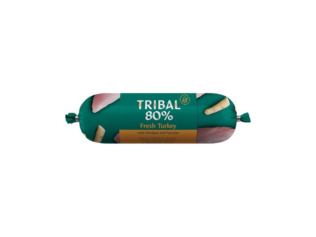 Toto kompletní mokré bezobilné monoproteinové krmivo pro psy obsahuje 80 % živočišných bílkovin. Receptura sestává z pouhých 3 ingrediencí: 80 % masa z jednoho zdroje + cizrna + pastinák. Díky jednoduchému složení jsou salámy Tribal 80 % vhodné i pro nejcitlivější a nejvybíravější psy a jsou ideálním doplňkem ke krmivům Tribal Fresh Pressed.