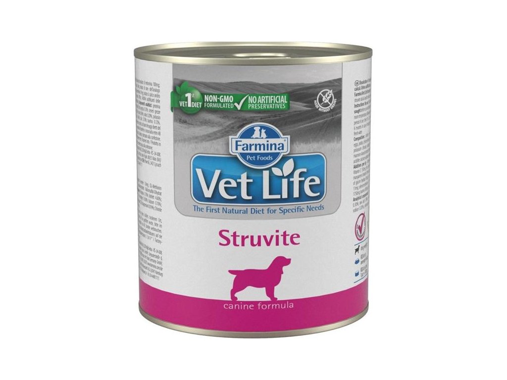 Farmina Vet Life Struvite je kompletní dietetické krmivo pro zvláštní účely výživy pro psy určené pro podporu rozpouštění struvitových kamenů a k omezení jejich opakované tvorby.