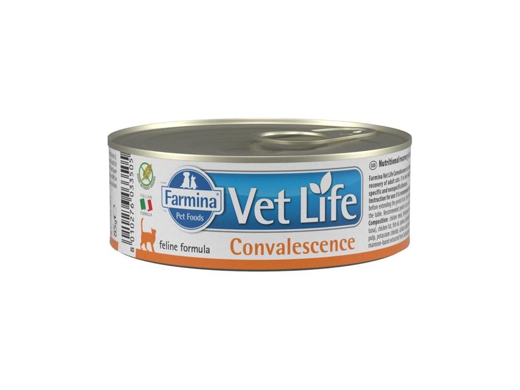 Farmina Vet Life Convalescence je kompletní dietetické krmivo pro zvláštní účely výživy pro dospělé kočky určené pro nutriční obnovu a regeneraci. Může být také indikováno jako nutriční podpora jedinců trpících specifickým či nespecifickým onemocněním.