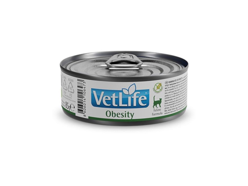 Farmina Vet Life Obesity je kompletní dietetické krmivo pro kočky určené ke snížení nadměrné tělesné hmotnosti.
