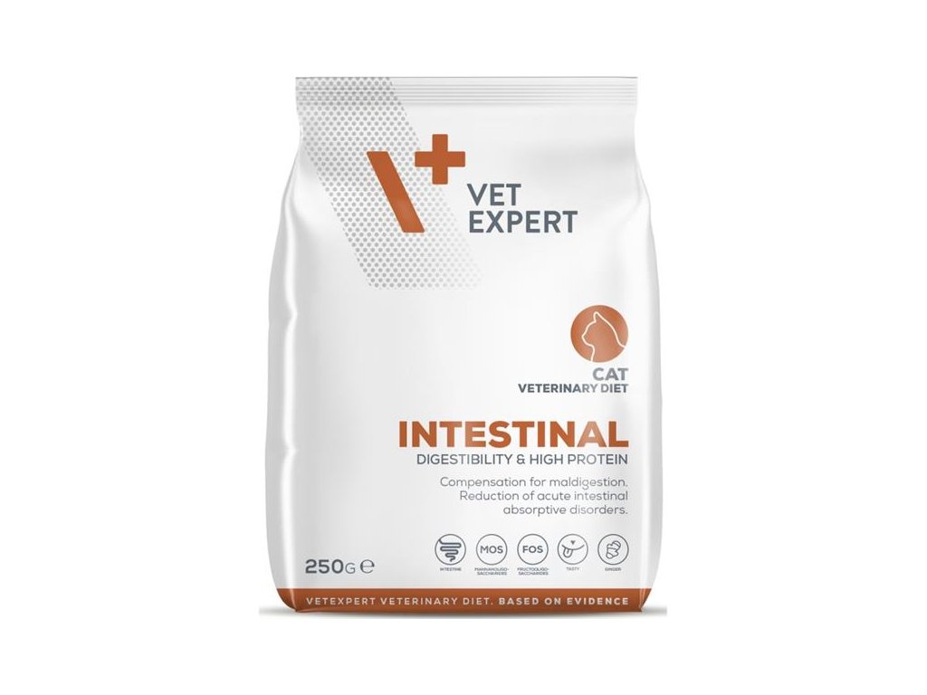 Kompletní a vyvážené dietetické krmivo pro kočky, jehož krmení se doporučuje ke kompenzaci a snížení poruch trávení a střevního vstřebávání.