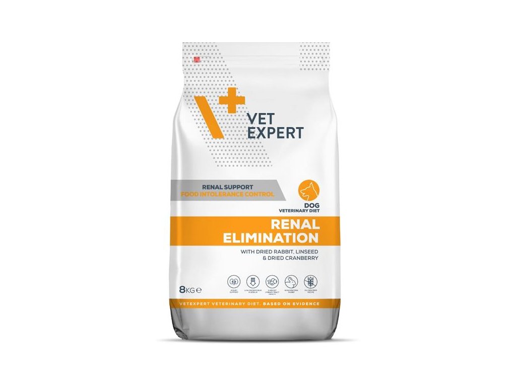 BIDIRECTIONAL ACTION - dieta Vet Expert Renal Elimination byla navržena pro psy se selháním ledvin a potravinovou intolerancí. Dieta se vyznačuje monoproteinovou a bezlepkovou recepturou, to znamená, že jediným zdrojem živočišných bílkovin je králík a jediným zdrojem sacharidů je hnědá a bílá rýže.