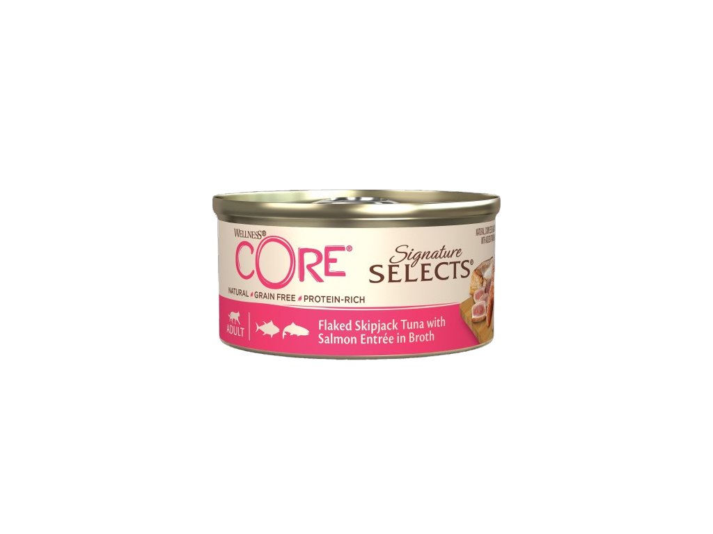 Wellness Core Cat Selects Flaked tuňák s lososem ve šťávě 79 g