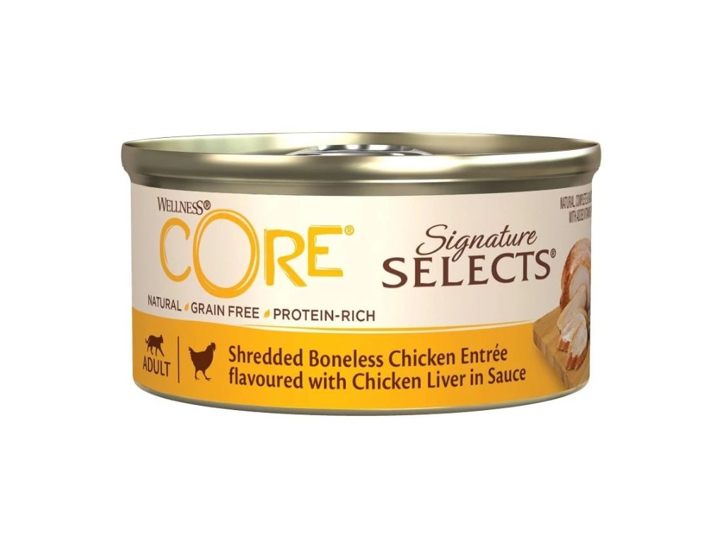 Wellness Core Signature Selects Shredded Boneless Chicken Entrée flavoured with Chicken Liver in Sauce 79 g