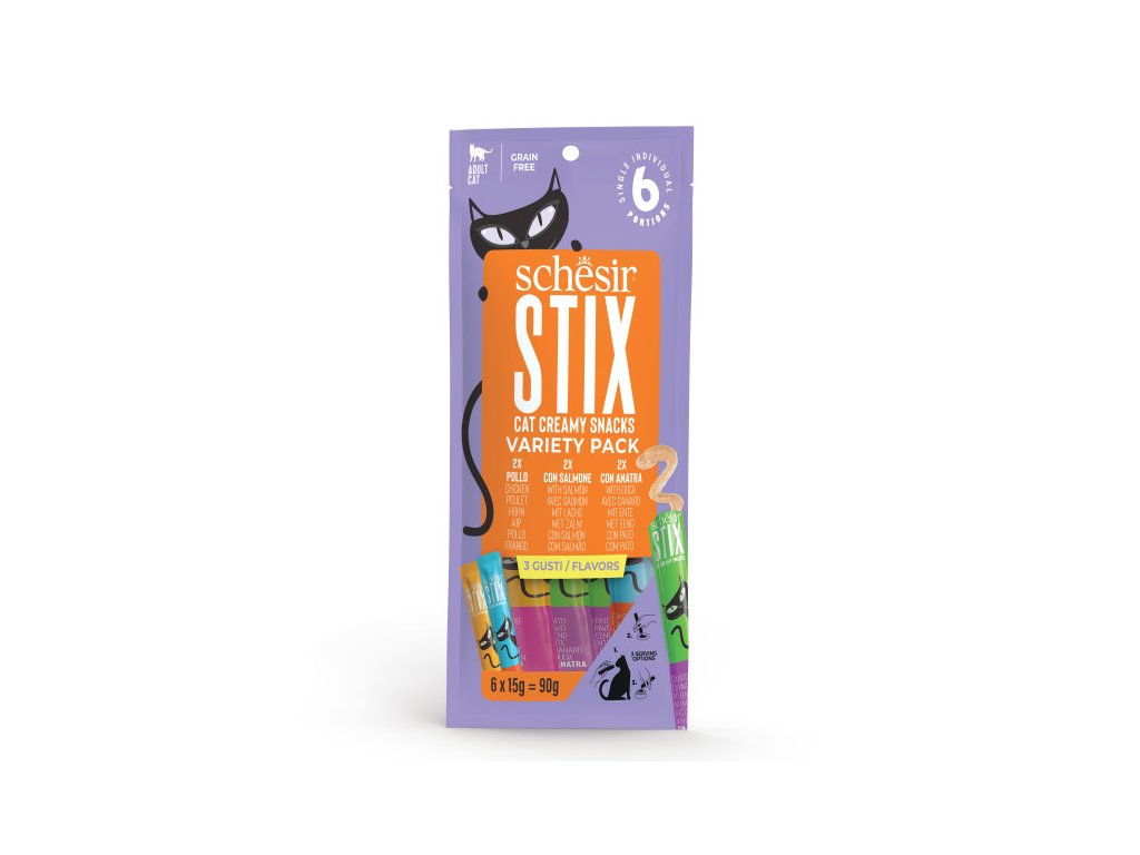 Schesir STIX je řada krémových pochutin navržených tak, aby potěšily a hýčkaly vaši kočku a zároveň jí dodaly dodatečnou hydrataci. Je ideální jako svačina mezi jídly nebo jako doplněk k jinému jídlu.