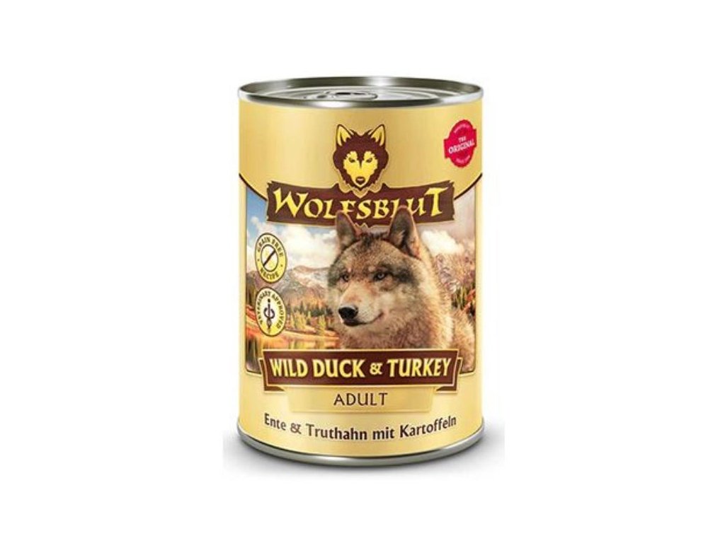 Jednotlivé složky krmiva WILD DUCK & TURKEY byly sestaveny společně s veterináři v souladu s přirozenou kořist vlka a poznatky holistické výživy psů. Mokré krmivo Wolfsblut je proto jedinečné.
